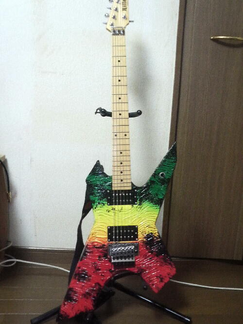 | KG-プライム オイル・ペインテッド・ラスタ。 表面に凹凸がある特徴的な塗装ですが、見た目とは違い、塗装は非常に薄くなっています。ディープインサート・ネックジョイントで、サスティーンに優れています。ネックに3度の角度がついており、立って弾いても座って弾いても同様にフィンガリングが出来ます。 - Killer Guitar ホームページより引用 -